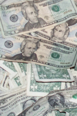 Okay, I couldn't resist. I took a picture of the pile of money we made at our last yard sale. Don't get excited... it's mostly one's.